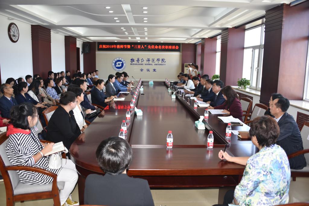 9月10日上午,学校在综合楼1206会议室召开庆祝2018年教师节暨“三育人”先优命名表彰座谈会。学校党政领导王育伟、杨春文、李旭中、刘峰、张艳霞、秦植林及“三育人”先优获奖单位代表、先进个人,新入职教师,退休教工代表,学校第五届教代会“三育人”工作委员会成员参加了本次座谈会。校党委常委、工会主席张艳霞主持会议。