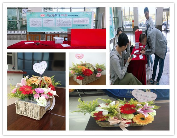 在教师节期间,学校工会、团委联合组织第二届“千言万语话师恩”活动,同时还在教师休息室摆放了鲜花,全校大学生纷纷为老师们送上最诚挚的祝福,使老师们更有幸福感、荣誉感,让老师们感受职业的荣光。