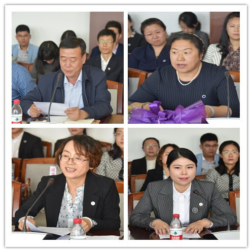 会上,荣获“三育人”先进集体代表教务处处长周传胜、“三育人”先进个人代表法学院教师褚清清、新入职教师代表物理与电子工程学院秦天茹、退休教工代表王冰分别做了发言。