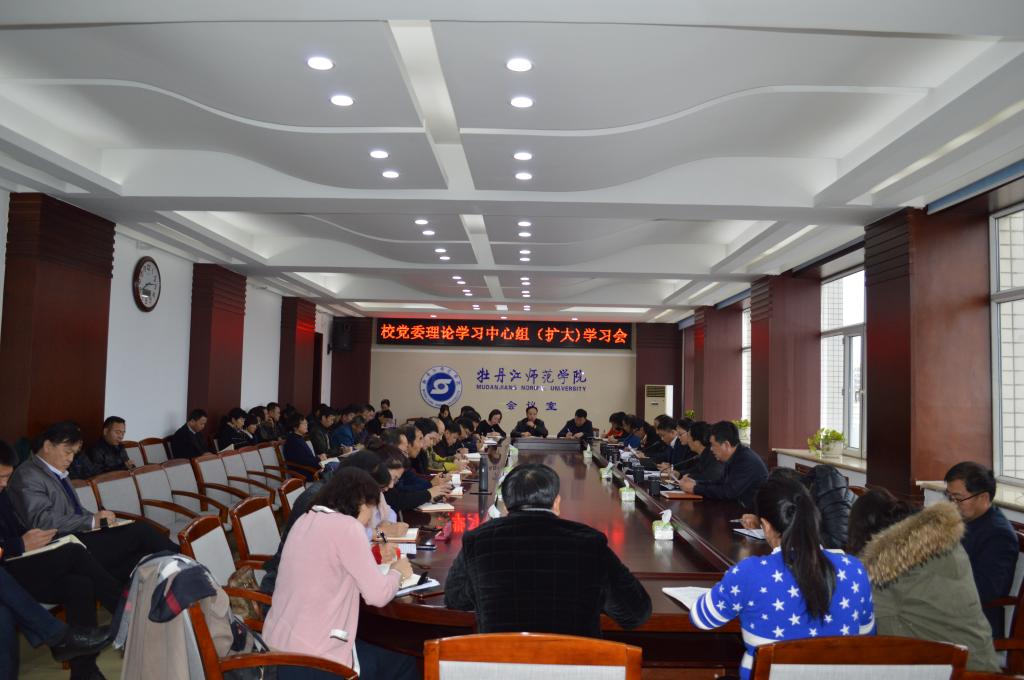 11月13日下午,学校在综合楼1206会议室召开校党委理论学习中心组(扩大)学习会议,传达学习党的十九届四中全会精神和黑龙江省委十二届六次全会精神。学校党政领导王志浩、梁中贤、刘峰、杨敬民、张艳霞、秦植林出席会议;校党委理论学习中心组成员、全校正处级干部、一级学科带头人、民主党派负责人参加会议。会议由校党委书记王志浩主持。