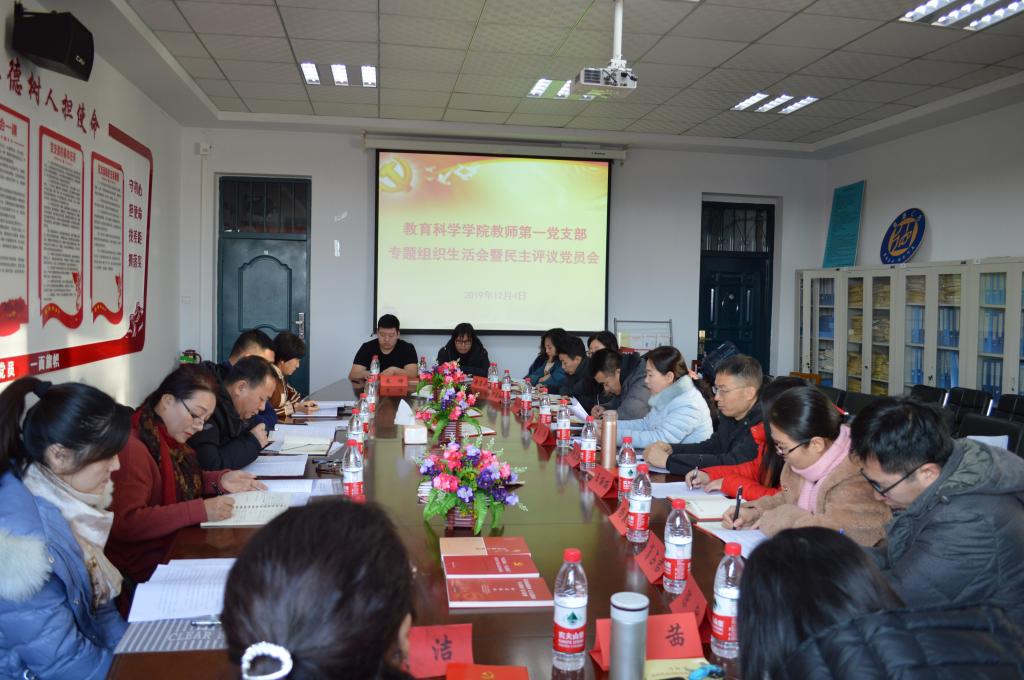 12月4日,教育科学学院教师第一党支部专题组织生活会暨民主评议党员大会在文科楼222会议室召开。省委第二巡回指导组成员郭源野、刘东巍,学校纪委副书记(监察处处长)、校内第二指导组组长马少霞,办公室副主任(主持组织部工作)佟亚辉等出席并指导会议。会议由教师党支部书记王华主持。