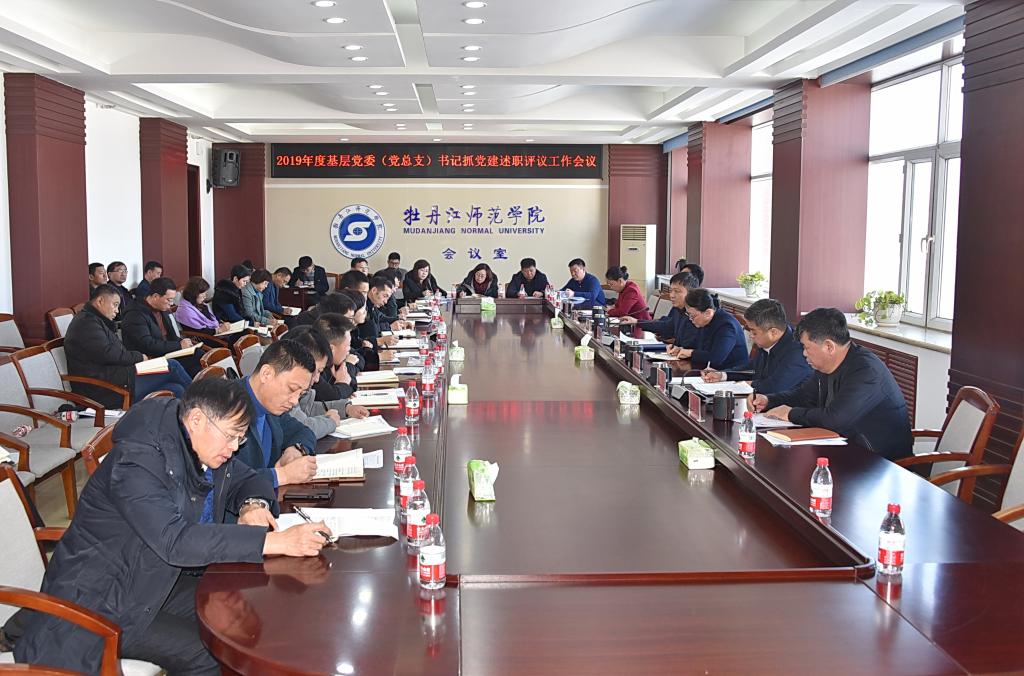 1月3日上午,学校2019年度基层党委(党总支)书记抓党建述职评议工作会议在综合楼1206会议室召开。学校党政领导,党委委员,纪委委员,各基层党委(党总支)书记共计40余人参加会议。会议由学校党委副书记刘峰同志主持。本次会议既是贯彻落实全国组织工作会议精神,落实全面从严治党要求,进一步压紧压实基层党建工作主体责任的重要举措,也是对基层党组织书记抓党建工作情况的一次集中展示和交流,更是全校基层党建工作的一次全面会诊和部署。