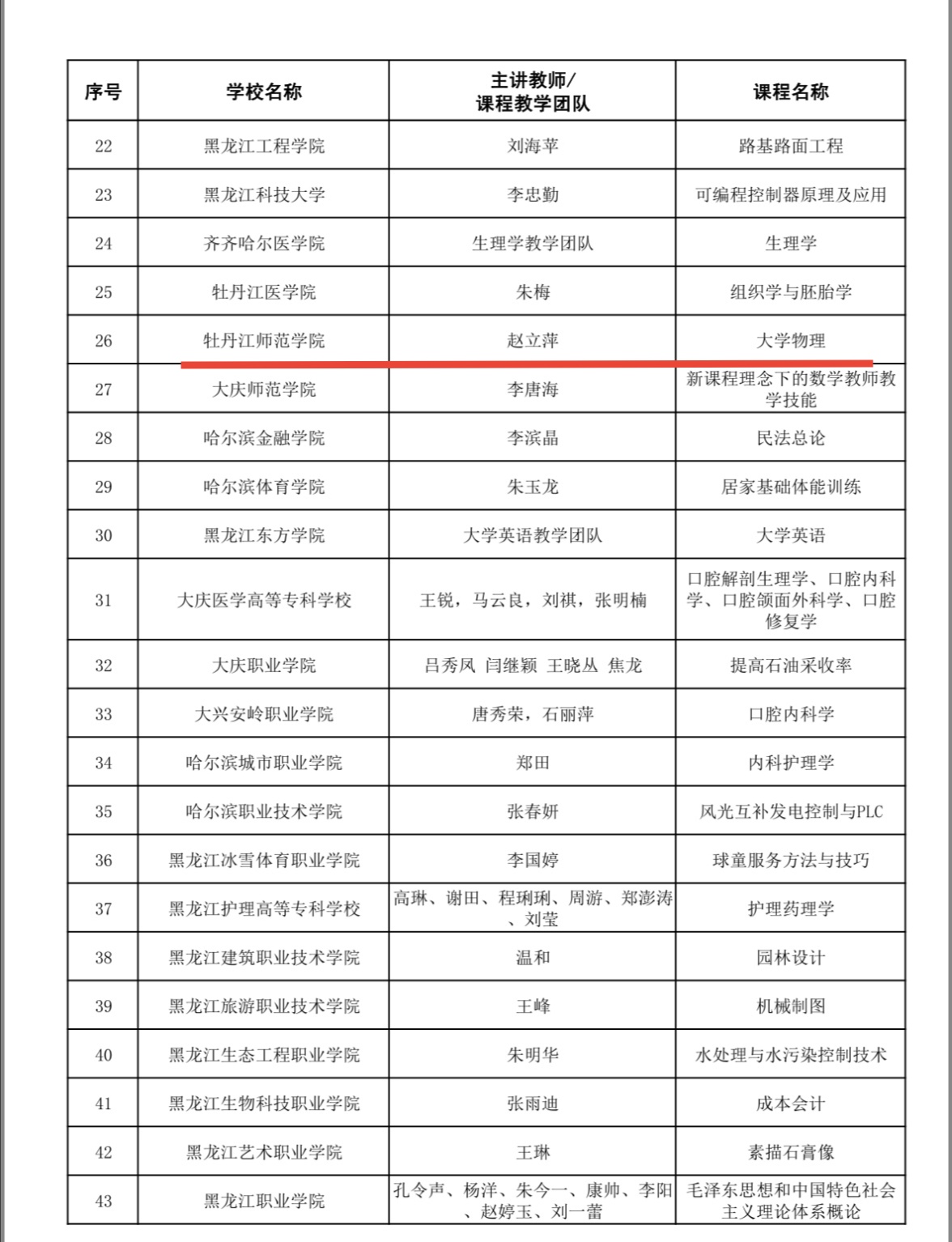 近日,黑龙江省教育厅组织开展了疫情防控延期返校期间高等学校在线教学典型案例认定工作,我校物理与电子工程学院赵立萍副教授等讲授的《大学物理》荣获首批“黑龙江省高等学校疫情防控延期返校期间在线教学典型案例”。本次共有全省54所本专科高等院校推荐的109门课程参与评选,经省在线教学指导委员会组织专家遴选,最终认定60门课程教学案例为首批“黑龙江省高等学校疫情防控延期返校期间在线教学典型案例”。