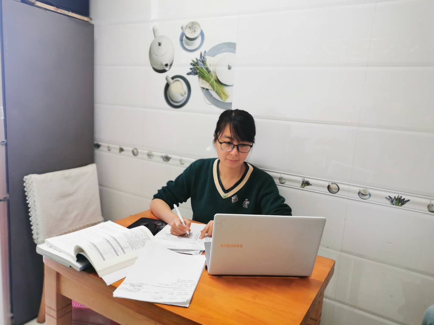 大爱无言,默默奉献,用责任担当为国门守卫者守后方。认真努力做好教学科研工作张蕾老师的背后,还有一个舍小家为大家的抗疫家庭。张蕾老师的爱人是绥芬河出入境边防检查站的一名移民警察,作为执勤五队教导员的他,按照原计划过年值班后就能回家团聚,但突如其来的疫情彻底打乱了计划。大年初二下午,张老师爱人刚到家正准备与家人吃团圆饭就接到单位紧急召回的命令。随着国外疫情越来越严重,严防境外输入,形成闭环管理成为了绥芬河这座口岸城市抗击疫情的首要任务。张老师的爱人始终坚守在执勤一线岗位上,保障着俄罗斯境内中国籍旅客顺利回国,中国境内俄罗斯旅客安全出境,确保疑似和确诊病例得到及时隔离和救治,保卫人民生命和财产安全。因始终在一线岗位执勤,存在一定疫情传播风险,夫妻俩只能通过视频见面,“老公,我们等着你回来”,张老师简单的问候和温暖的话语里从未有过一句怨言,完成工作之余,家里一日三餐、洗衣做饭、照顾老人和孩子的重担都落在了她一个人身上,她默默付出、无怨无悔,将对丈夫的思念和牵挂变为支持理解的实际行动。她经常对爱人说,我们要以大局为重,没有大家,哪有小家……每每说到这里,张老师的眼睛是湿润的,声音是哽咽的,她暗下决心,疫情不除,坚决不退,一定做好坚强后盾,让丈夫心无旁骛做好抗疫工作!