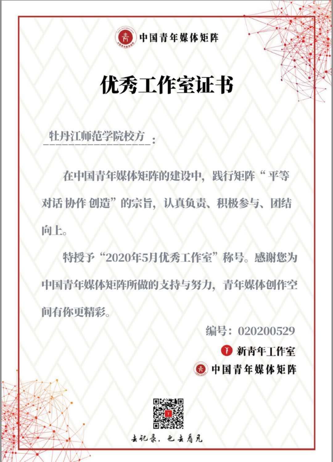 近日,在新华社中国青年媒体矩阵优秀工作室评选中,我校官方微博在全国官方微博工作室中脱颖而出,荣获“2020年5月优秀工作室”称号。
