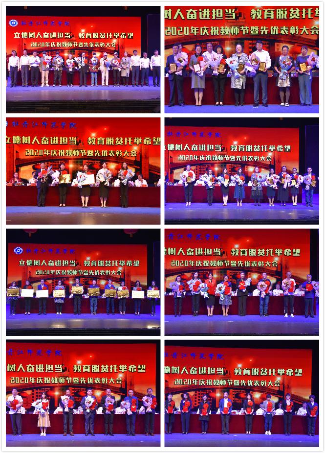 9月10日下午,学院在第一音乐厅隆重举行“立德树人奋进担当 教育脱贫托举希望”庆祝2020年教师节暨先优表彰大会,学院党政领导王志浩、梁中贤、刘峰、李旭中、杨敬民、张冬、张艳霞、秦植林,以及处科级干部,在校师生代表,从教30年教职工代表,离退休老教师代表和新入职教职工代表齐聚一堂,共庆佳节。