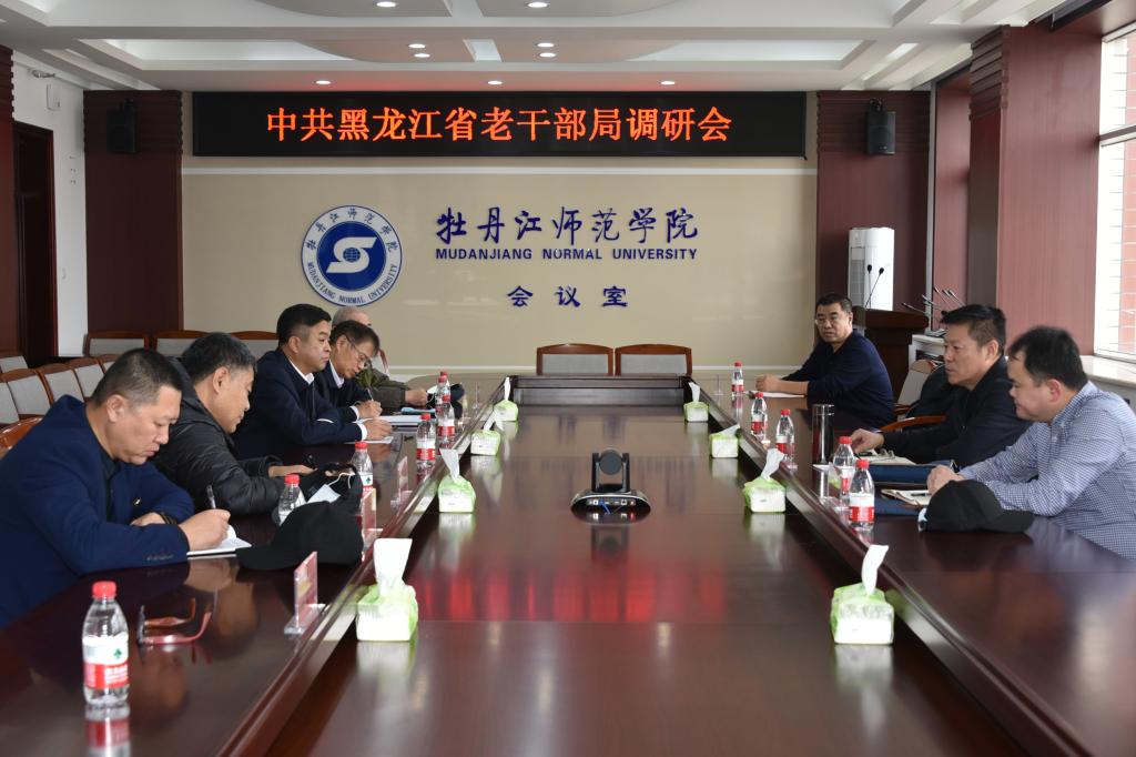 11月12日,省委老干部局副局长贾宇、组织指导处一级主任科员孙永亮,在牡丹江市委组织部离退休干部党工委副书记申光的陪同下到我校调研指导工作。调研座谈会在综合楼1206会议室举行。党委常委、副院长张冬,离退休工作处班子成员及退休干部代表参加了会议。