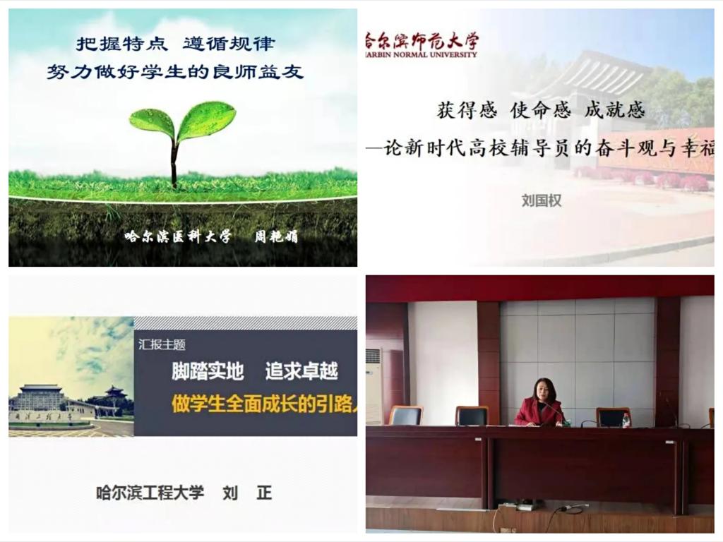 哈尔滨医科大学学生处处长周艳娟以《把握特点 遵循规律 努力做好学生的良师益友》为题,从当代大学生的心理特点和行为特点入手,为参训学员详细讲解了如何培养学生的健康心理、心理教育工作的误区以及如何引导学生调适自己的情绪。哈尔滨师范大学马克思主义学院研究生辅导员刘国权以《获得感 使命感 成就感——论新时代高校辅导员的奋斗观与幸福观》为题,结合自身的奋斗历程,从“获得感”“使命感”和“成就感”等方面和参训学员一起分享了新时代高校辅导员的奋斗观和幸福观。哈尔滨工程大学计算机科学与技术学院、国家保密学院、软件学院党委副书记刘正以《脚踏实地 追求卓越 做学生全面成长的引路人》为题,从巩固学生的思想与觉悟、激发学生的动力与能量、促进学生的成长与成才、实现自身的梦想与价值四个方面与参训学员分享了他的工作经验和工作理念。我校纪委副书记马少霞以《涵养德与廉——筑牢辅导员成长发展的生命线》为题,结合具体案例,从如何认识本次培训、如何认识辅导员岗位特点和辅导员事业发展的保障三个方面与全体辅导员进行了交流。四场专题讲座内容丰富、主题突出,既具有理论高度,又具有实践深度,对提高我校辅导员的工作能力和工作水平具有很强的指导性、针对性和启发性。
