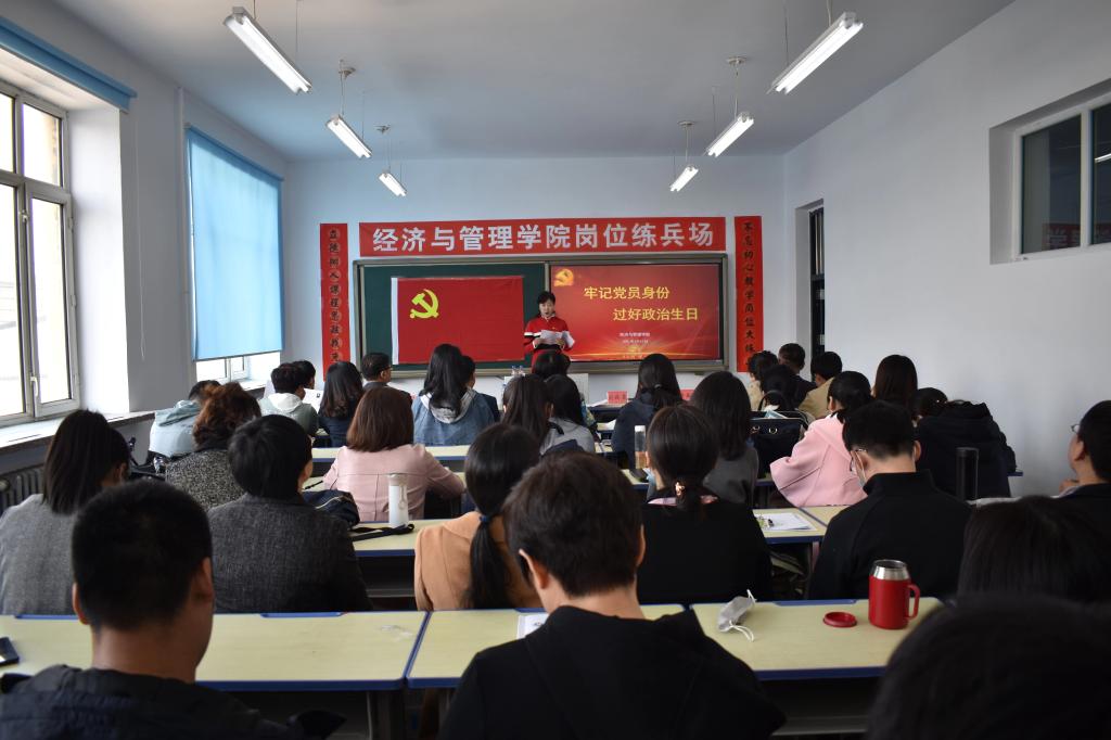 为推进党史学习教育开展,进一步巩固“不忘初心、牢记使命”主题教育成果,强化党员教育管理,提升党员的身份意识,发挥党员的先锋模范作用,切实增强党组织的战斗力和凝聚力,4月21日下午,经济与管理学院在文科楼409室开展党员“政治生日”主题党日活动。校党委副书记刘峰、组织部副部长佟亚辉观摩本次活动,经济与管理学院党政领导、全体教师党员参加了本次活动,活动由经济与管理学院党委副书记常大治主持。