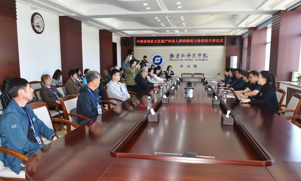 5月25日,中国非物质文化遗产传承人群研修研习培训计划“鱼皮技艺研修班”“鱼皮、桦树皮、麦秸剪贴技艺研修班”开班仪式在我校举行。50名手工技艺传承人群将在为期30天的培训中,强基础、拓眼界、增学养,提高传承实践能力,促进非遗可持续发展。黑龙江省文旅厅非遗处二级调研员王春艳;我校科研处处长金志民,省乡村教师教育发展学院(继续教育学院)院长周传胜、副院长王明莉,项目负责人、首席专家,我校文学院宋娟教授,项目宣传策划,我校文学院宋明华教授及全体研修学员、项目管理团队、学术团队出席开班式。开班式由我校省乡村教师教育发展学院(继续教育学院)副院长王明莉主持。
