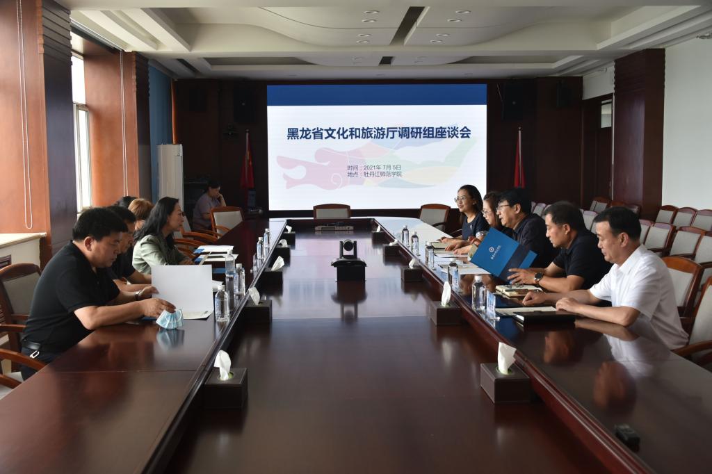 7月5日上午,黑龙江省文化和旅游厅非遗处处长赵佩先、二级调研员王春艳,牡丹江市文旅局副局长王文明、非遗科科长孙晓霞,牡丹江市非遗中心主任于志勇一行5人来我校调研座谈。副院长李旭中、相关职能部门负责人、“非遗研培计划”项目负责人陪同调研。调研座谈会在综合楼1206会议室举行。