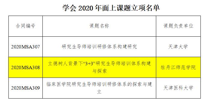 近日,中国学位与研究生教育学会发布《学会2020年面上课题立项通知》,我校研究生学院负责的《立德树人背景下“3+3”研究生导师培训体系构建与探索》项目立项获批。