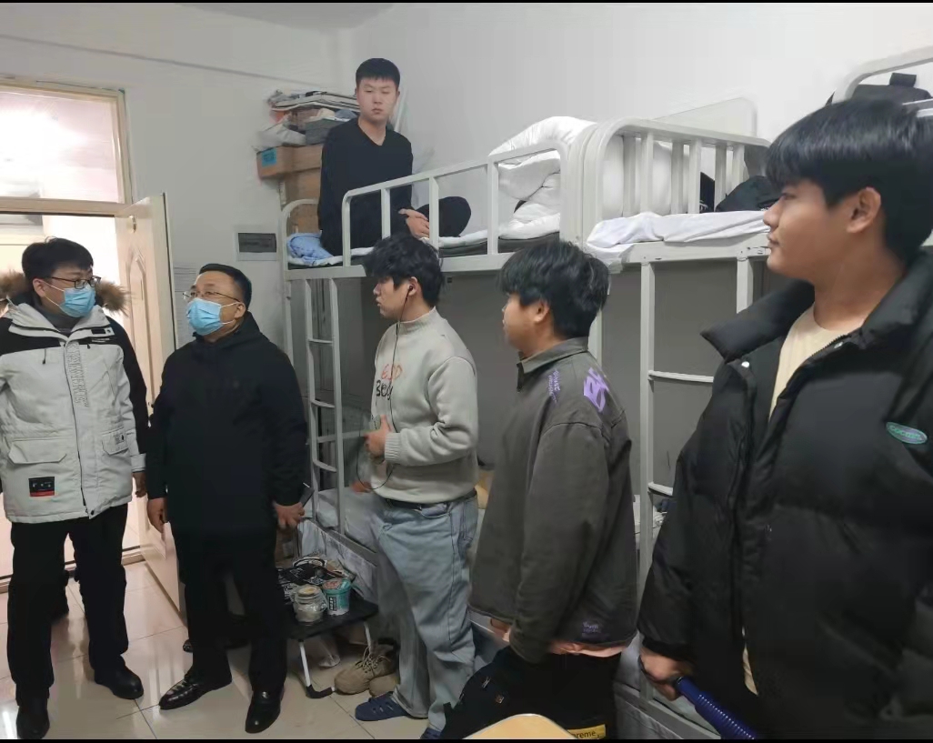 为进一步落实落细学校疫情防控管理工作,深入了解学生的思想动态和学习生活情况,确保疫情防控期间各项工作的安全稳定,12月6日,纪委书记、党委常委,省监委驻开云体育APP下载监察专员张燕梁在后勤管理与服务处副处长王书臻、学生处副处长滕以波、公寓值班辅导员法学院焦洋的陪同下前往学校16号学生公寓走访,深入了解学生思想动态和学习生活情况。