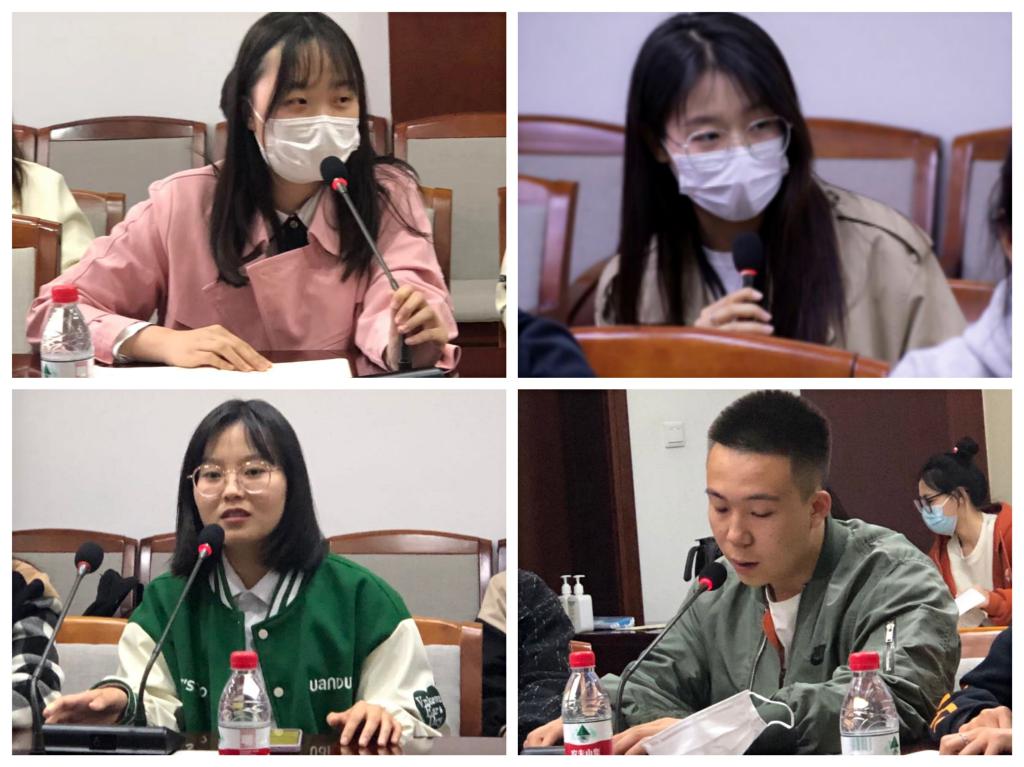 座谈会上,副院长、党委常委程爽对各位学生代表为学校发展积极建言献策表示感谢,向长期因疫情封闭在校的同学们表达亲切的问候。她还就学校近期在教育教学等方面取得的成绩及学校相关管理工作向同学们作了简单介绍,并就学生提出的相关教学方面的问题给予了针对性解答。