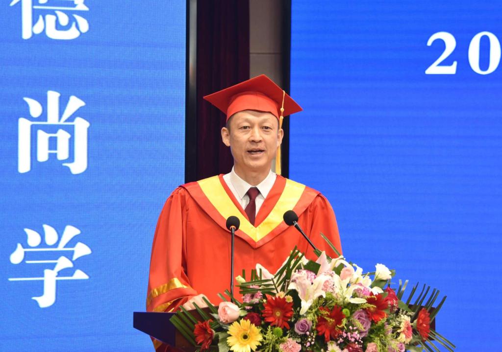 院长、党委副书记、学位评定委员会主席李春江在毕业典礼上致辞。他代表全校师生员工,向顺利完成学业的各位毕业生表示热烈祝贺;向默默付出的家长朋友们致以崇高敬意;向付出辛勤劳动的全体教师表示诚挚感谢;向受疫情影响,不能到现场参加典礼的毕业生表示问候与牵挂。