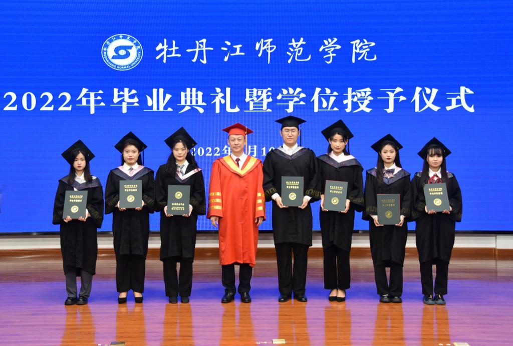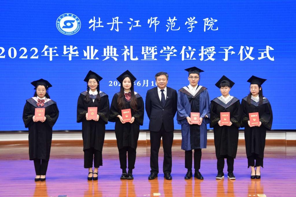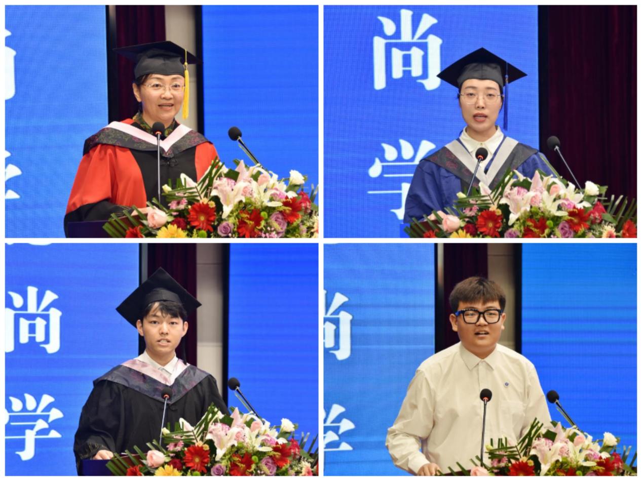 2022届数学科学学院应用数学专业硕士研究生安英英代表2022届全体研究生发言,她深情回顾三年求学时光,感谢师长无私的指导与付出,祝愿母校日新月异,明天更美好。2022届经济与管理学院市场营销专业程存恩代表2022届全体本科生发言,他回顾了大学最大的收获,是在“崇德尚学,厚积薄发”校训的引领下与人为善、与事为真,表达了会带着母校的期盼和祝福,继续努力,续写牡师人新的荣光的决心。校学生会主席、2019级教育科学学院林禹涵代表全体在校生向即将踏上人生新征程的毕业生们表示由衷的祝贺,祝愿学长学姐们实现自己的人生理想和价值,成为祖国和民族的栋梁,在青春的赛道上奋力奔跑,争取跑出师院青年的最好成绩。黑龙江省教学名师、牡丹江市劳动模范、文学院李华教授代表全体教师发言,她对2022届毕业生顺利完成学业表示热烈祝贺,希望毕业生虚心涵泳、弘毅致远,博雅通达、求是敬先,谋近致远、知行合一,厚德载物、从容有度,不忘初心、砥砺前行。2007届思想政治教育专业毕业生、哈尔滨工程大学“工学学者”、马克思主义学院教授、博士生导师李世辉校友发言,他深情表达了毕业15年来对母校的无限感激和怀恋,叮嘱毕业生要感恩母校,要不懈奋斗,要有情怀担当,衷心祝愿母校升级发展再创辉煌,祝福敬爱的师长工作顺利、身体健康,祝福可爱的学弟学妹们日新月异、前程似锦。