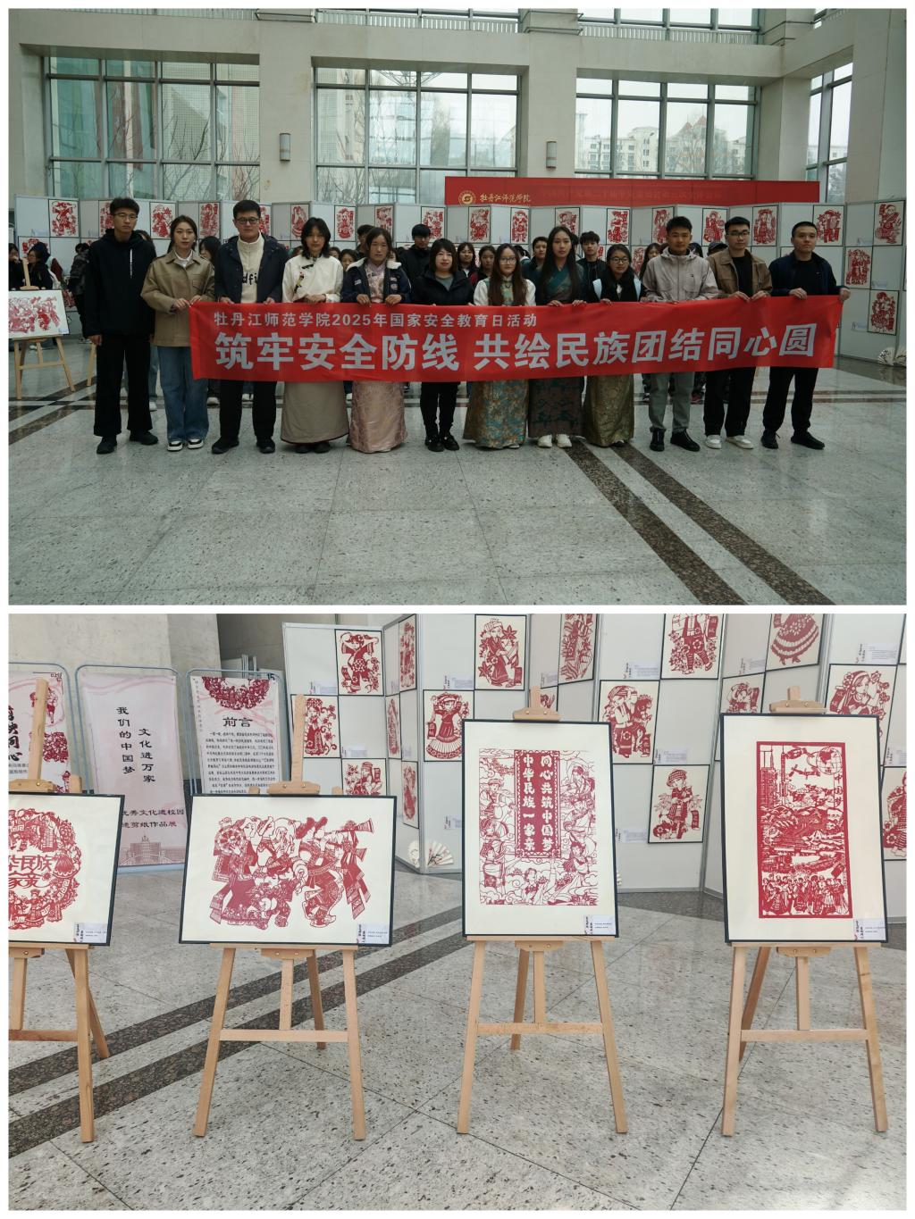 4月14日,学校在综合楼阳光大厅举办“筑牢安全防线 共绘民族团结同心圆”剪纸作品展,进一步坚定文化自信,激发“非遗”热爱与传承,深刻领悟国家安全责任,进一步铸牢中华民族共同体意识。