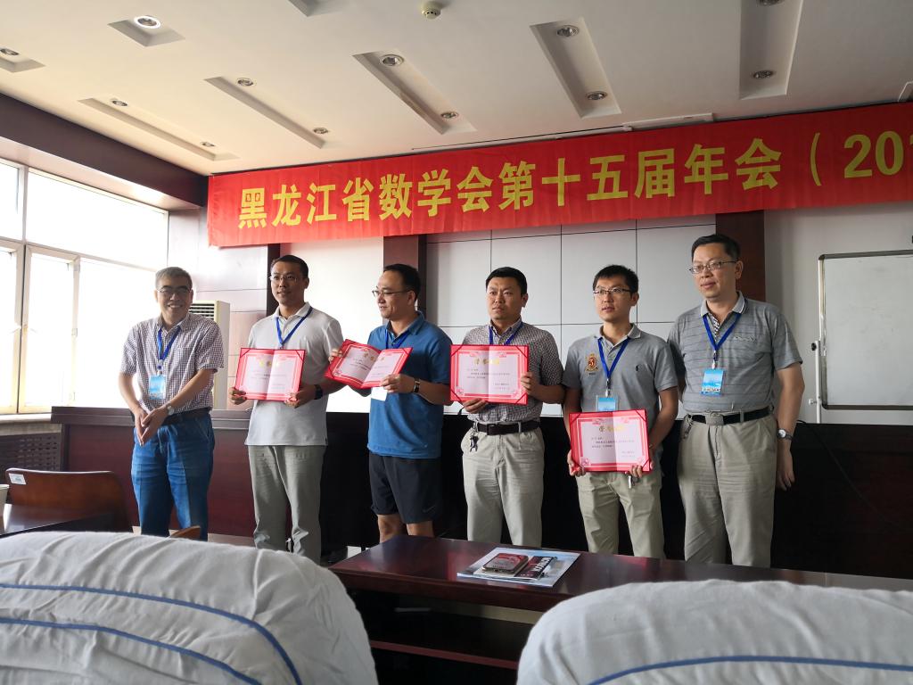 在本次年会的闭幕式上,黑龙江省数学会秘书长付永强教授通告了本次年会理事会讨论通过的各项事项相关决议,同时,黑龙江省数学会理事长薛小平教授为4位黑龙江省数学会优秀青年学术奖获得者颁发了奖励证书。于2018年8月2日下午圆满的完成了本次年会的所有日程。