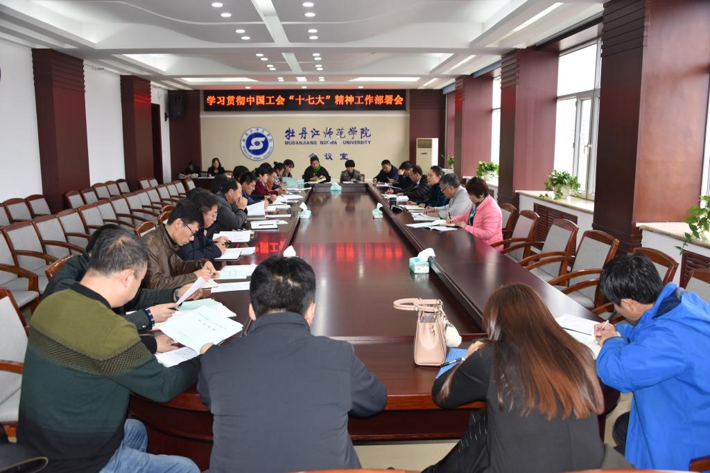 10月29日下午,校工会在综合楼1206会议室召开学习贯彻中国工会第十七次全国代表大会精神工作部署会议。全校各基层工会负责人和校工会干部参加会议。校党委常委、工会主席张艳霞主持会议。会议分为学习贯彻大会精神和安排部署工作两个阶段。