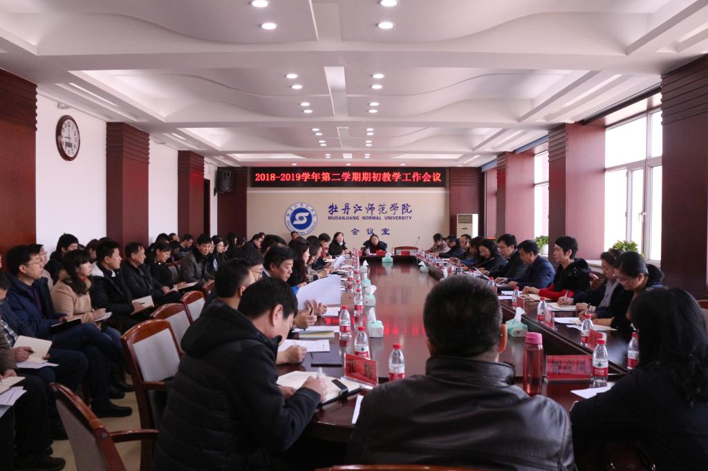 会上,教务处处长周传胜通报了本学期本科教学重点工作及期初本科教学准备情况;研究生学院院长张冰通报了本学期研究生教学重点工作,并对研究生期初教学工作进行部署;人事处长董芸解读了职称评审新标准及教师业绩考核方案;教务处副处长关洪海对期初教学检查及实践教学相关工作进行了部署;教务处副处长许宏文通报了期初缓、补考等相关工作;评估中心副主任宋伟新通报了审核评估整改落实情况,并对评估中心下一阶段工作进行了部署。