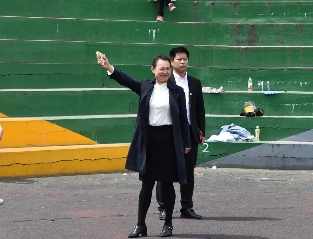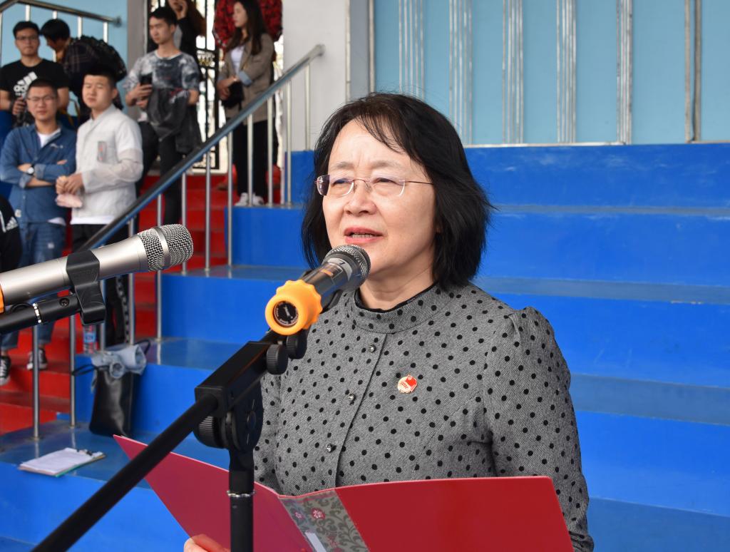 校党委常委、工会主席张艳霞为体育专业组比赛发令