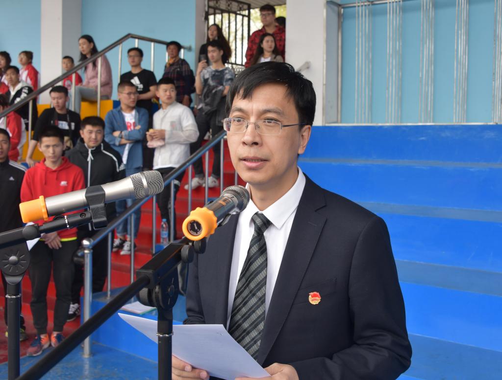 随着国旗和校旗冉冉升起,开幕式正式开始。校长梁中贤宣布“五·四”火炬接力赛开幕。校党委常委、副校长、体育运动委员会主任杨敬民致开幕词,他对团员青年提出了殷切期望:希望广大青年高举五四精神的火炬,发扬“党有号召,团有行动”的光荣传统,牢记“崇德尚学 厚积薄发”的校训,为自己的前途命运,为学校的升级发展,为祖国的繁荣富强勤奋学习、锐意进取,争做知行合一、有勇有谋、敢于担当的有志青年;争做品德高尚、懂得感恩、乐于奉献的有爱青年;争做敢于有梦、勇于追梦、勤于圆梦的有为青年。