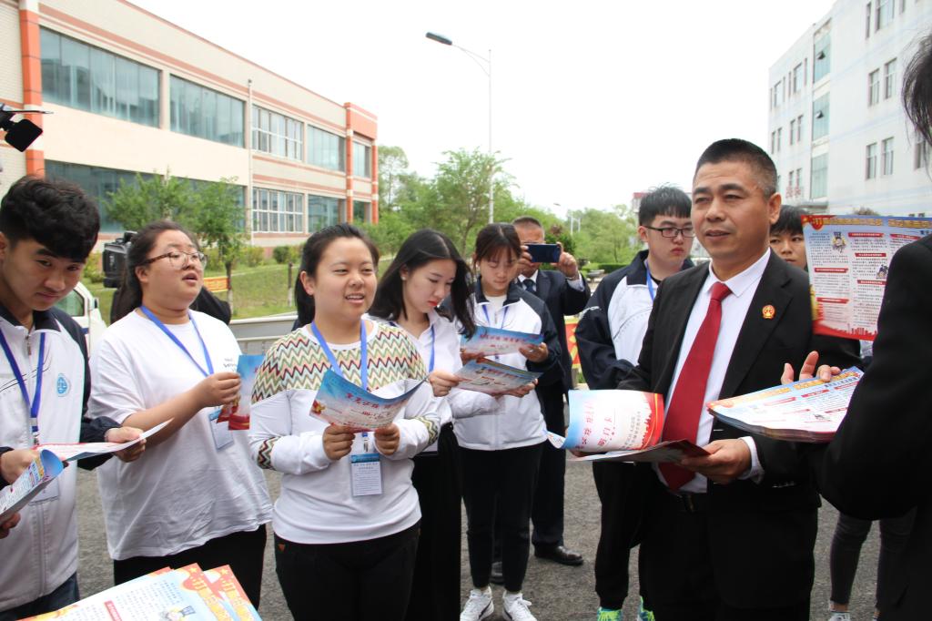 仪式结束后,法官和老师们向学生发放了扫黑除恶明白卡,讲解了相关的法律知识;校园审判庭开庭审理了某高校附属医院临时工曹某某诈骗一案。