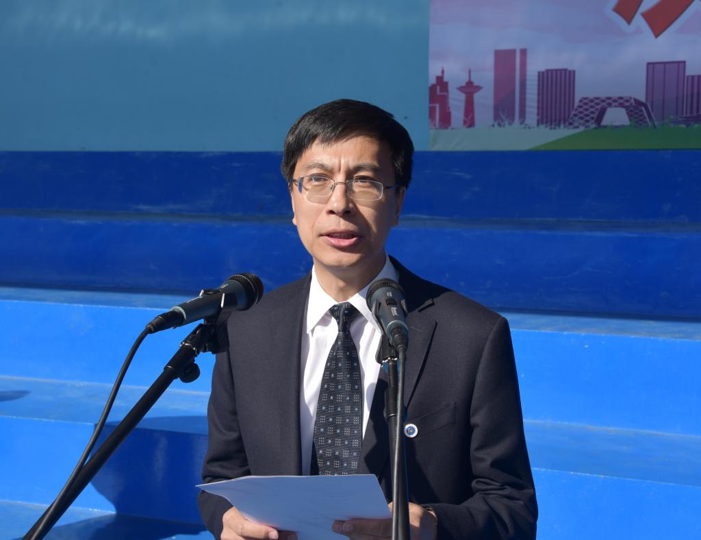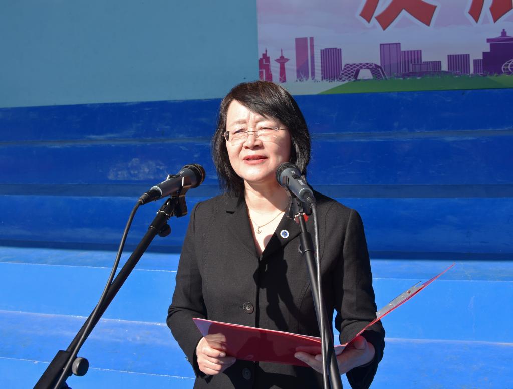 校长梁中贤致开幕词。她代表学校对本届运动会的召开表示热烈的祝贺,向精心筹备本届运动会的工作人员表示诚挚的感谢,向积极参加今天活动的全校师生员工致以美好的祝愿!她在讲话中回顾并肯定了我校优良的体育运动传统以及近年来我校体育工作所取得的突出成绩。她指出,运动会是对全校师生员工运动水平的一次检阅,是学校群体性体育运动成果的一次检验,是对广大师生员工健康意识、团队精神、顽强意志的一次考验,更是全校师生员工精神面貌的一次全面展示。她希望,广大师生利用这一平台,放松身心、一展身手、顽强拼搏,取得优异的成绩;更希望全校广大师生传承体育精神,凝聚共识、攻坚克难,用发展解决矛盾,用实干作为表率,用业绩体现担当,用品行赢得尊重,进一步解放思想、勇于创新、敢于担当、追求卓越、共同奋进,以优异的成绩迎接中华人民共和国成立70周年。最后,她预祝运动员取得优异成绩,运动会圆满成功。