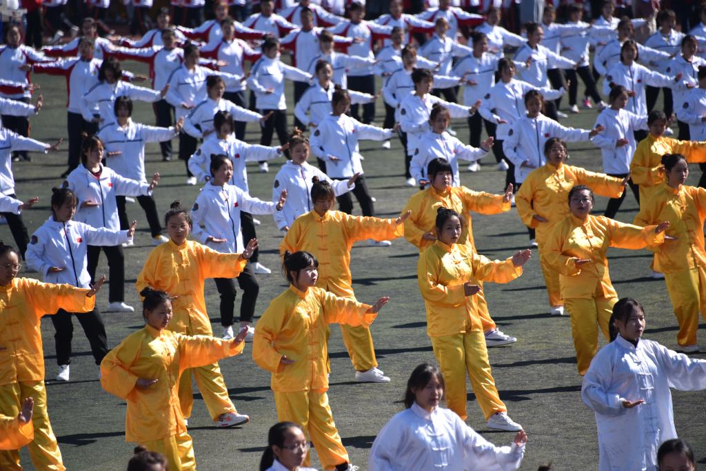 最后,各代表方队整齐有序地退出场地,广播体操表演、太极拳表演以及各项竞赛项目正式开始。广播体操的表演场面宏大,表现出我校师生团结一致的合作精神,展现了师院学子的青春与活力,各代表队广播操动作规范标准,整齐划一,赢得了场上师生的声声赞叹。近千人的太极拳表演动作整齐有力、刚柔并济,将二十四式太极拳完美地呈献给在场观众,充分展示了我校大学生热爱中华传统武术、传承中华传统文化的精神风貌。