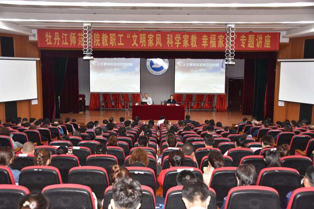 为加强教职工思想道德引领,强化廉洁家风教育,弘扬家庭文明,提高干部职工家庭文化建设能力,推动高素质专业化创新型教职工队伍建设,5月31日下午,学校邀请东北师范大学家庭教育研究院院长赵刚教授来校作了题为《人生最美的路是回家的路——家庭、家风、家教的当今价值与建设》的专题讲座,讲座在春秋讲坛举行。校党委书记王育伟,党委常委、纪委书记刘峰,党委常委、工会主席张艳霞,党委常委、宣传统战部部长秦植林出席讲座;我校各单位处科级干部、教职工代表,教育科学学院硕士生、本科生代表,以及牡丹江市爱民区各中小学教师代表、家长代表参加讲座。讲座由工会主席张艳霞主持。