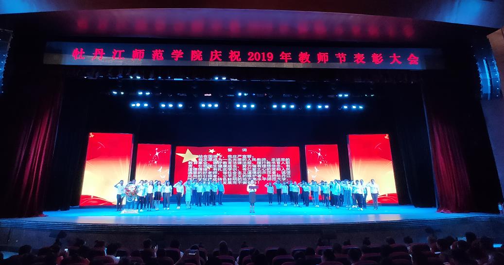 校长梁中贤在会上致辞。首先,梁校长代表学校党委和行政,向辛勤工作在教学、科研、管理和服务第一线的全校教职工致以节日的问候,向为学校改革发展贡献力量的离退休老同志表示崇高的敬意;向受到表彰的全省模范教师、全省优秀教师、青教赛获奖教师、学校三育人标兵等先进典型表示诚挚的祝贺;向刚刚步入牡师院工作的新教职工们表示热烈的欢迎。梁中贤校长表示,全校教师是学校事业发展的建设者,是改革发展的贡献者,是“艰苦奋斗、无私奉献”的引领者,更是“四有”好老师的践行者。