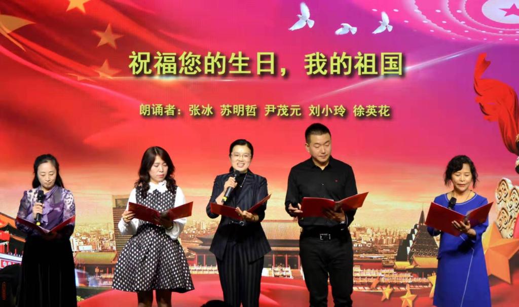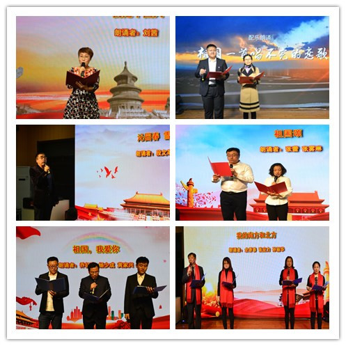 诗歌朗诵会上, 7组选手同台献艺,通过朗诵歌颂祖国的诗、词、文章等,声情并茂地颂扬多党合作的优良机制和伟大祖国的繁荣昌盛。民盟开云体育APP下载总支支部委员们以一首饱含深情的《祝福您的生日,我的祖国》拉开了朗诵会的序幕;张林影老师与学生路之阳以师生组合的形式,为大家带来《祖国,一首唱不完的恋歌》;老教师代表段文革老师用湖南方言为大家带来原汁原味的毛泽东经典诗词《沁园春·雪》带领现场观众感受祖国河山的雄伟壮阔、一代伟人的伟大抱负和胸怀;乔征磊、杨少成、黄家兴三位老师倾情演绎原创诗歌作品《祖国,我爱你》、刘茜老师的《我是中国人》及张蕾、张雾琳老师的《祖国颂》抒发了他们对伟大祖国辉煌成就的热情讴歌以及美好祝福;全香春、张应力、孙丽华、刘静霞四位老师共同表演《我的南方和北方》为本次诗朗诵盛宴划上圆满句号。整场诗歌朗诵会高潮迭起、现场掌声雷动。