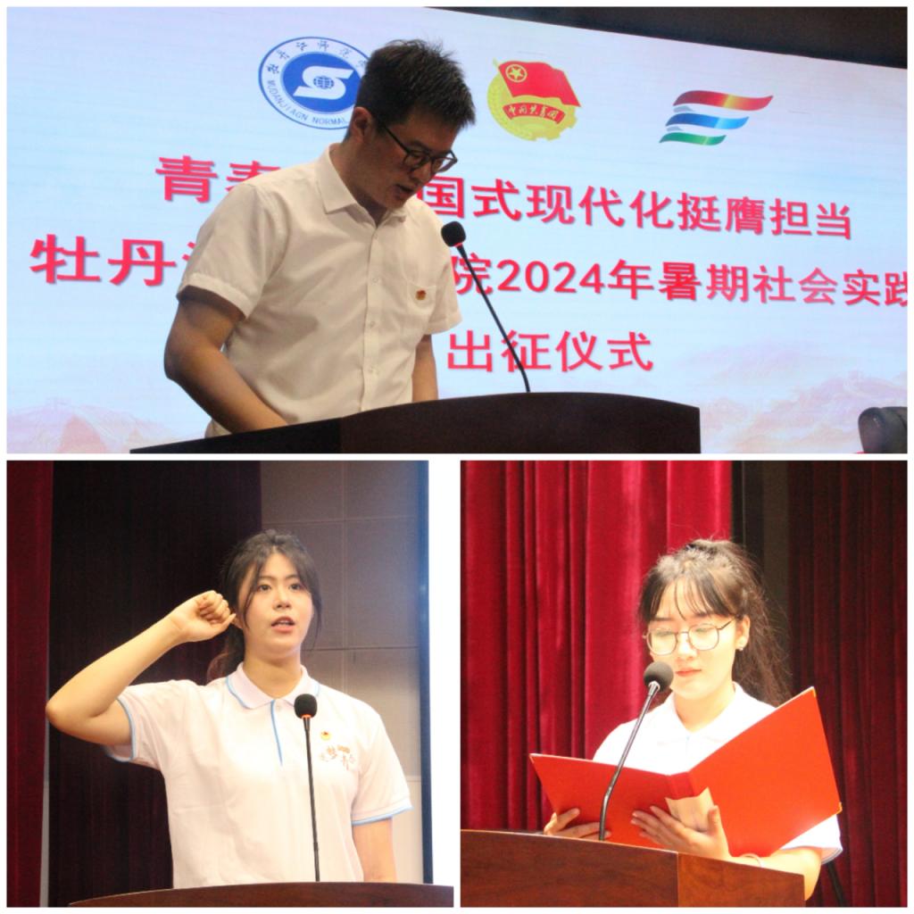 仪式最后,党委副书记张燕梁对即将投身于暑期社会实践的全体师生表达亲切的问候和崇高的敬意,同时,他对志愿者们提出了希望和要求,一是要坚定理想信念,筑牢信仰之基。将个人成长与服务社会、国家发展、民族复兴伟业相结合;二是要勇于担当作为,展现牡师青年风采。发挥专业特长和自身优势,为乡村振兴助力。三是要注重实践创新,提升能力素质。将创新思维与实际问题相结合,要虚心学习不断丰富自己的阅历和见识。四是要确保安全有序,确保活动质量。在社会实践过程中,要严格遵守纪律要求,听从团队安排,不能单独离队,确保活动安全有序进行。