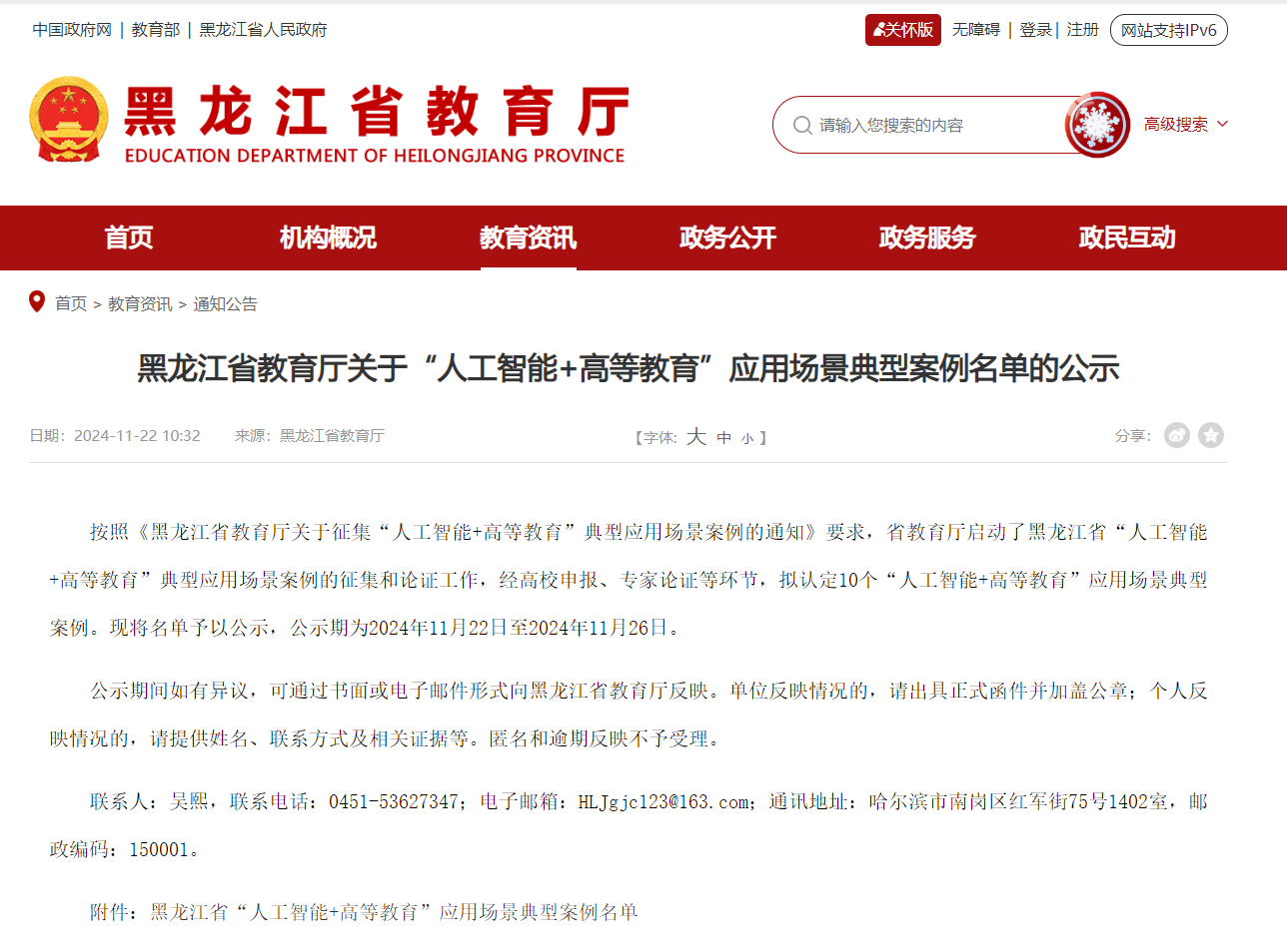 近日,黑龙江省教育厅公布“人工智能+高等教育”应用场景典型案例名单,我校“中俄双语人工智能赋能教师教育数智化平台”案例榜上有名。