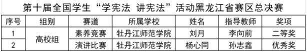我校学子在第十届全国学生“学宪法 讲宪法”活动黑龙江省赛区总决赛中斩获佳绩