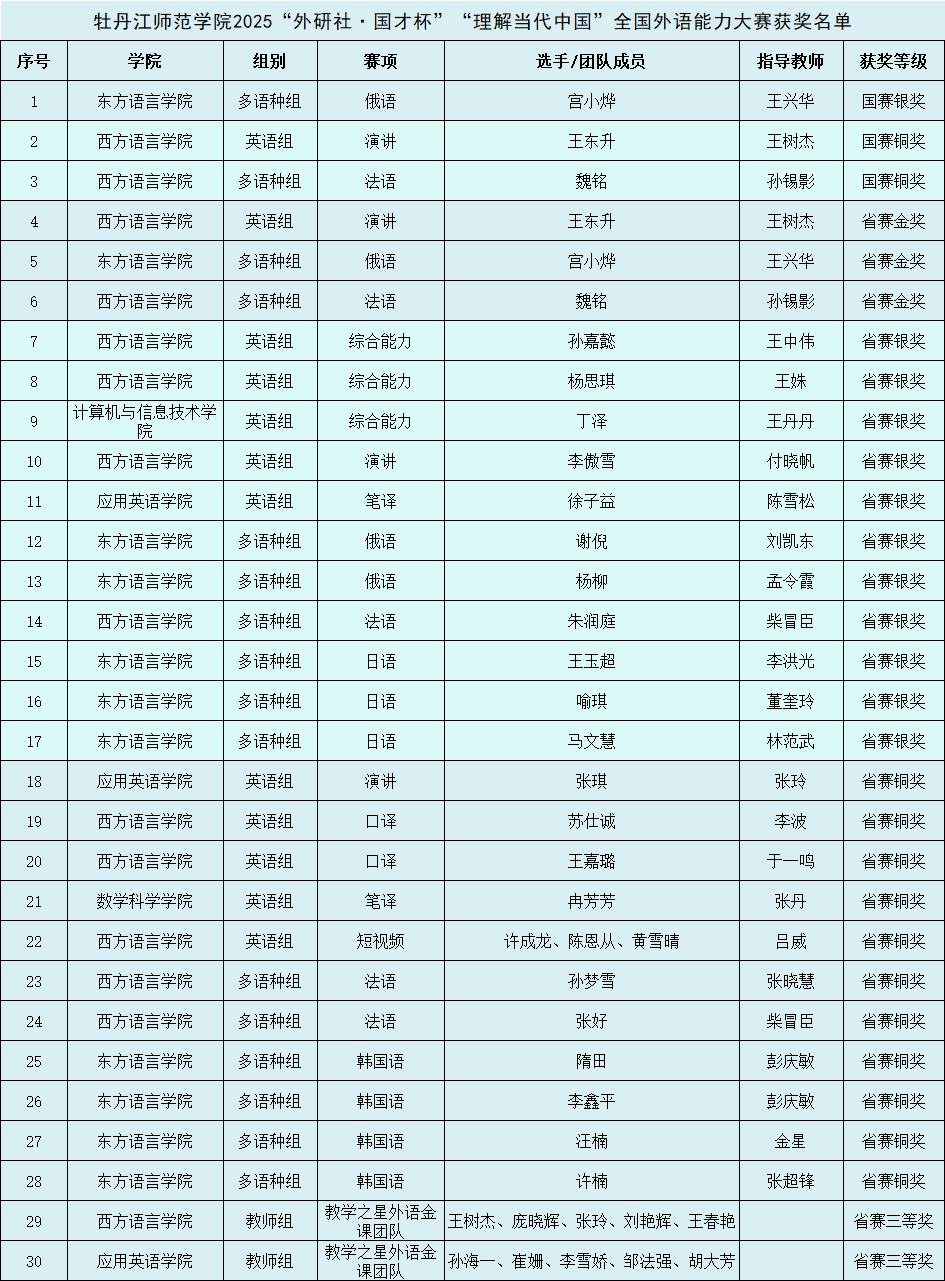 近日,2025“外研社・国才杯”“理解当代中国”全国外语能力大赛圆满落下帷幕。经过激烈角逐,我校最终荣获国赛银奖1项、铜奖2项,省赛金奖3项、银奖11项、铜奖13项。