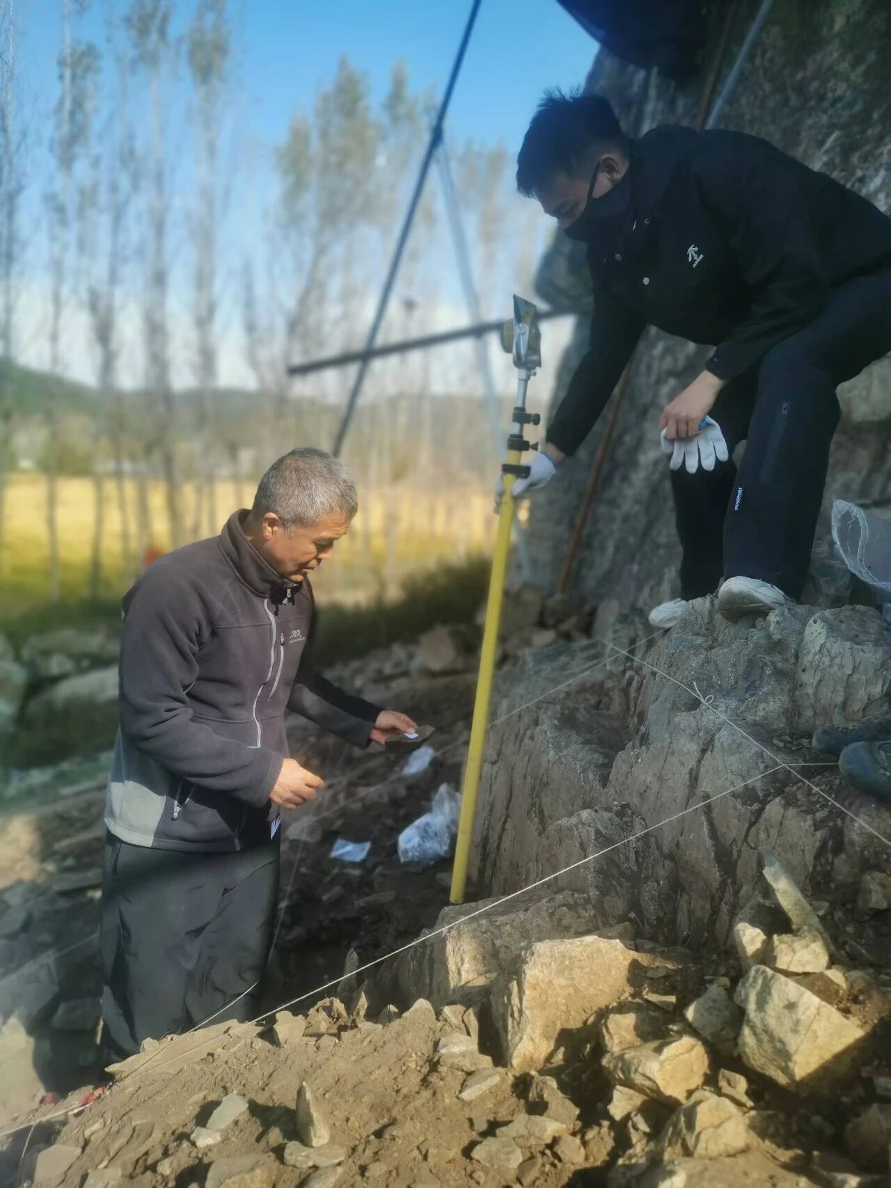 阚德刚老师在文物保护与修复一线展现出的执着精神与精湛技艺,堪称学生们学习的榜样。在艰苦的田野实践中,他始终身体力行:当发现遗址保护碑倾斜、界桩松动时,他亲自动手加固;面对碑文字迹模糊,他一丝不苟地重新粉刷油漆,使其焕然一新、清晰可见,确保历史标记得以长久传承。更令人敬佩的是,当自然环境侵蚀导致文物局部损坏、裸露在外时,他不仅积极呼吁加强保护,更会及时进行抢救性的采集和修复,用双手挽救历史的碎片。