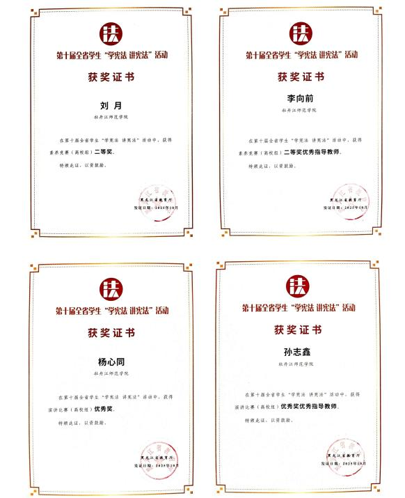 学以致用彰显实力,竞赛场上再创佳绩。法学院学生在第十届全国学生“学宪法讲宪法”活动黑龙江省总决赛中表现优异,获得多项荣誉。