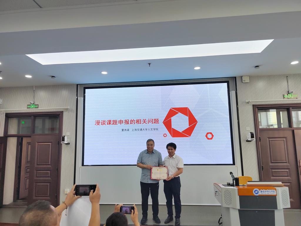 为提高学校国家社科基金和国家艺术基金项目申报质量,推进学校人文社会科学高质量发展,8月27日下午,学校邀请上海交通大学人文学院特聘教授、博士生导师、南京艺术学院二级教授夏燕靖作国家社科基金项目申报培训。培训由副院长、党委常委左明辉主持,各二级学院科研副院长、文学院、音乐与舞蹈学院、美术与设计学院等申报国家社科基金的相关教师参加了培训。