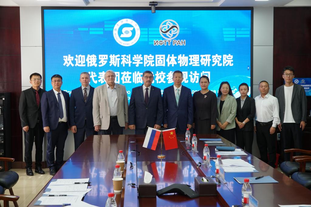9月9日—12日,俄罗斯科学院固体物理研究院院长列夫琴科·亚历山大·阿列克谢耶维奇院士率代表团访问我校。两校围绕功能材料领域的科研合作开展了系列交流,推动中俄国际“功能材料”联合实验室建设落地见效。我校与俄罗斯科学院固体物理研究院在综合楼1203会议室举行会谈。俄罗斯科学院固体物理研究院院长列夫琴科·亚历山大·阿列克谢耶维奇院士、克韦节勒·维塔利·弗拉基米罗维奇院士、副院长杰列申科·阿列克谢·尼古拉耶维奇教授;开云体育APP下载院长、党委副书记丛喜权,副院长、党委常委张艳霞,相关职能部门负责人和物理与电子工程学院师生参加活动。