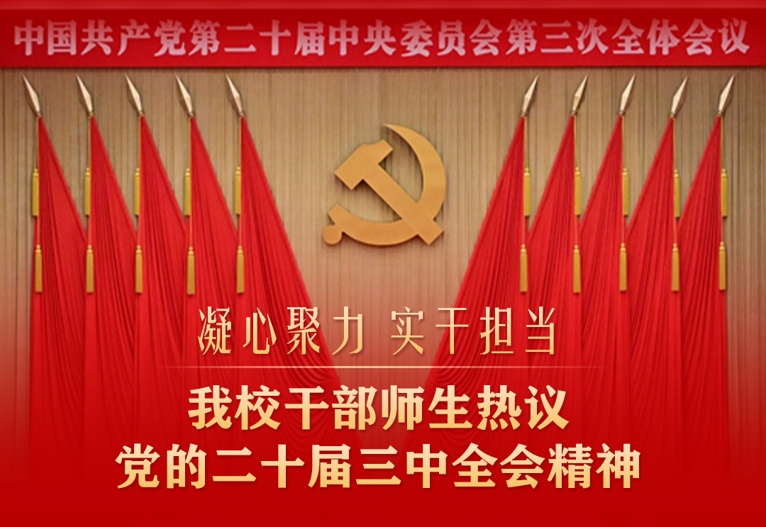 2024年7月15日至18日,中国共产党第二十届中央委员会第三次全体会议在北京举行,我校干部师生第一时间通过多种方式深入学习领会党的二十届三中全会精神。大家一致表示,将更加紧密地团结在以习近平同志为核心的党中央周围,把进一步全面深化改革的战略部署转化为推进中国式现代化的强大力量,凝心聚力、实干担当,落实立德树人根本任务,完善人才培养机制,瞄准培育新质生产力和经济社会高质量发展的内涵要求,把进一步全面深化...